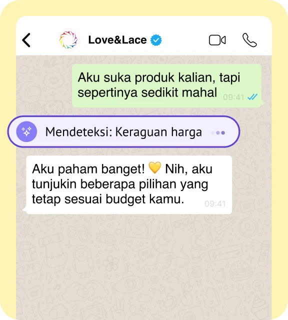Agen AI kamu tahu katalogmu, klienmu, dan gaya mereka. Ia merekomendasikan apa yang pelanggan inginkan bahkan sebelum mereka bertanya.